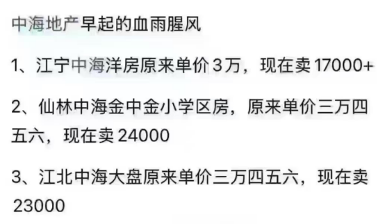 开发商与业主一起砸盘!中海地产南京多楼盘价格跳水