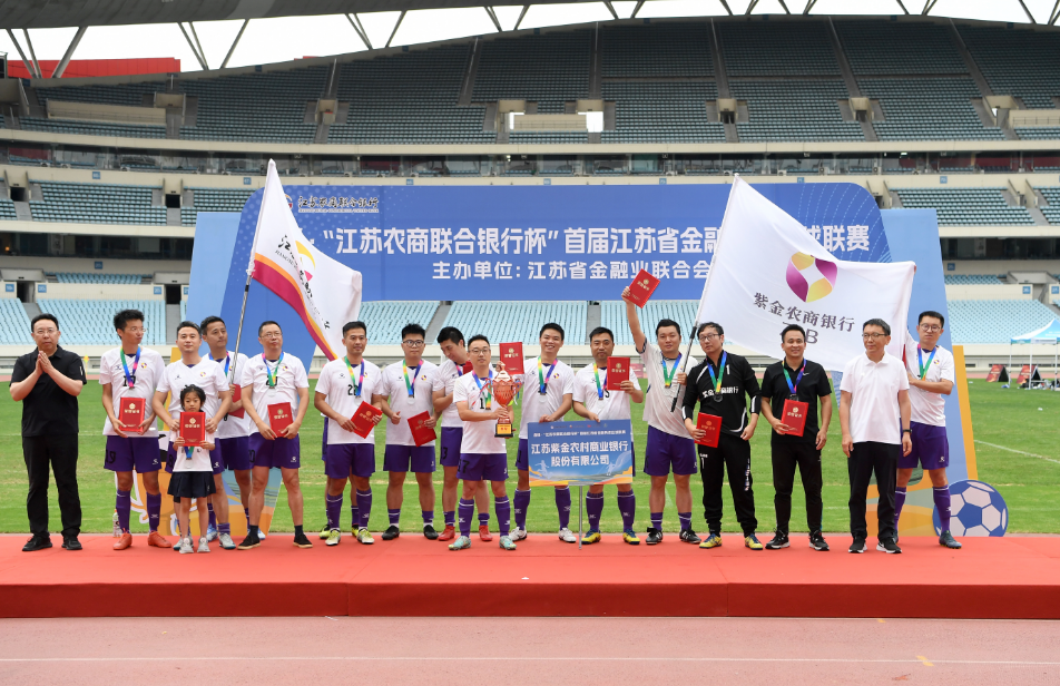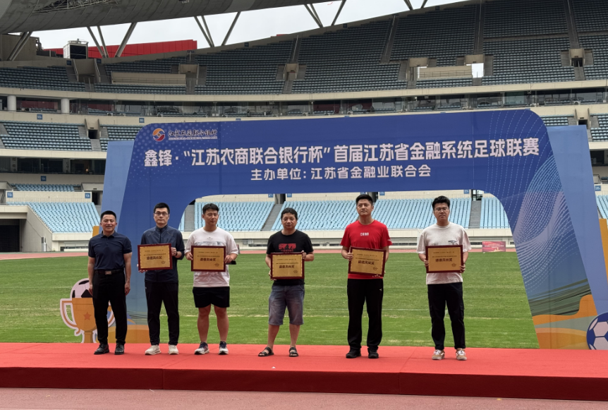 2025年6月8日下午,由江苏省金融业联合会主办、江苏农商联合银行冠名赞助的鑫锋"江苏农商联合银行杯"首届江苏省金融系统足球联赛在南京奥体中心圆满落幕。