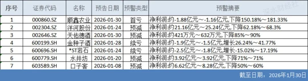 1月29日晚间,顺鑫农业(000860)发布业绩预告,成为第七家发布2025年业绩预告的A股酒企。