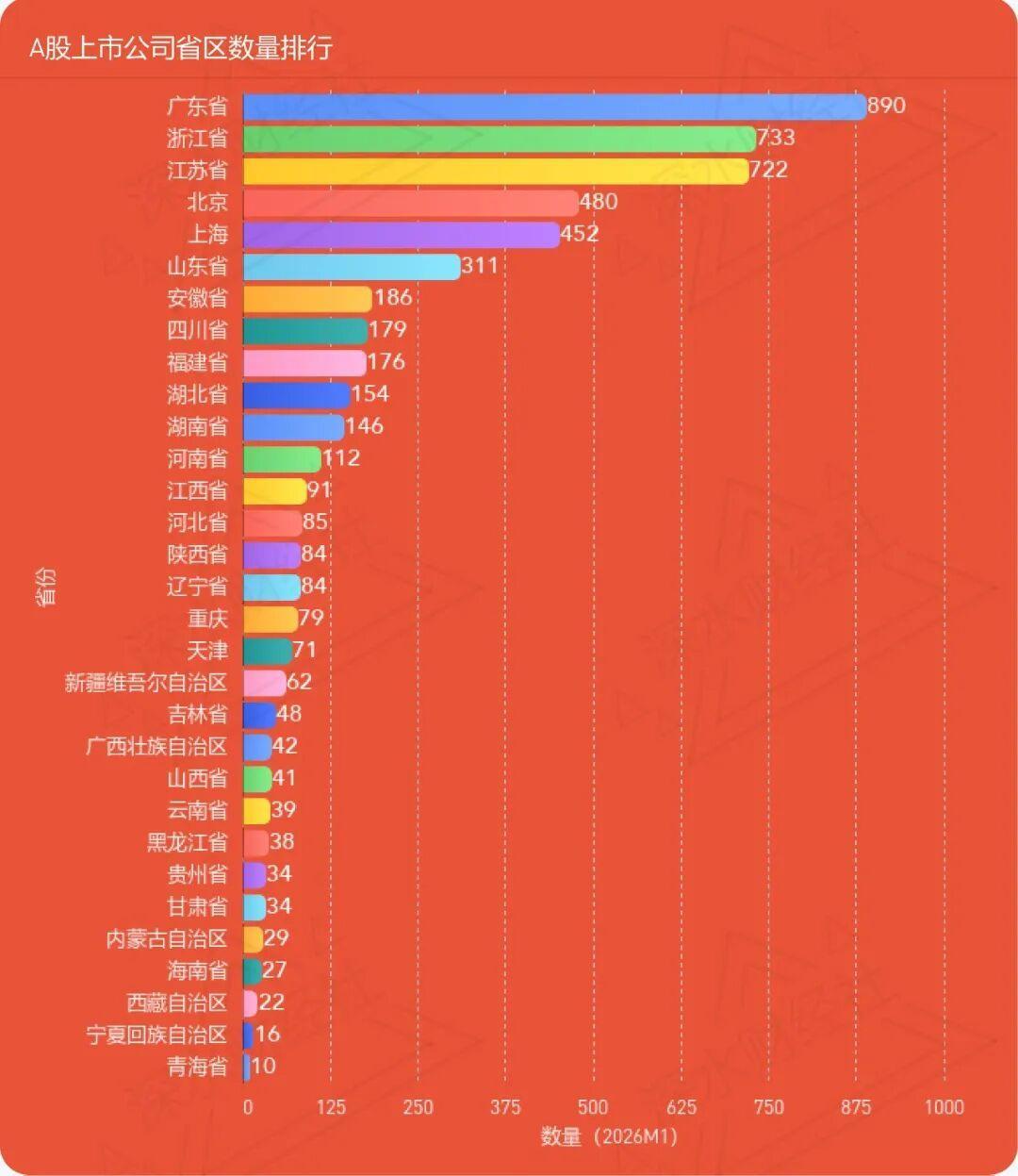 A股公司数量省市排行