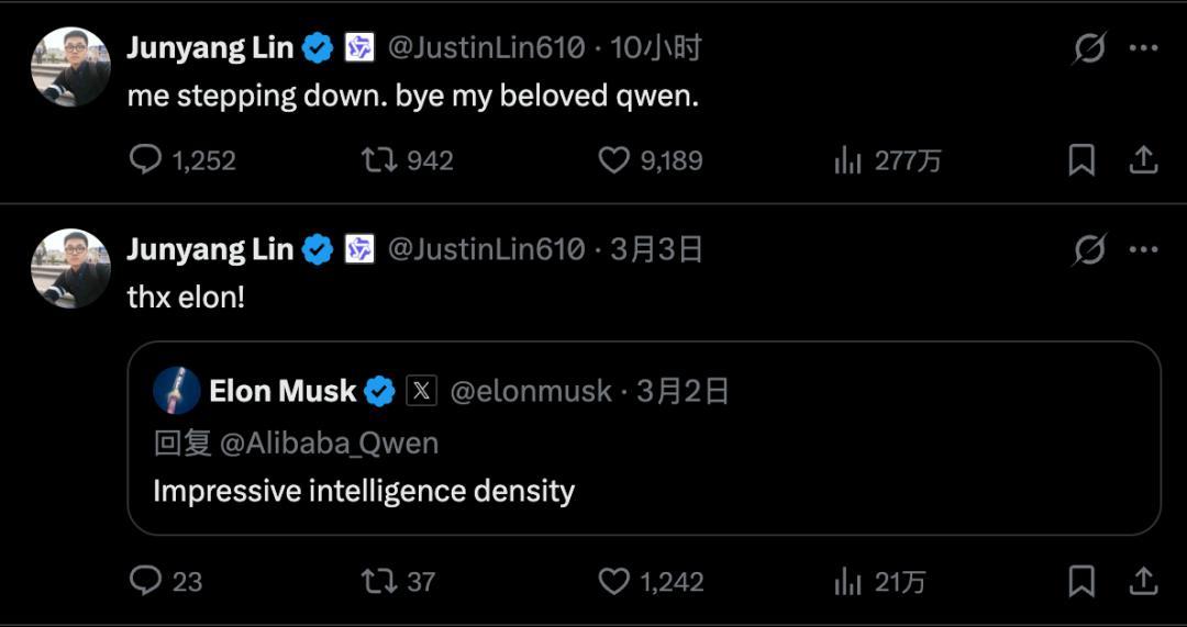 3月4日凌晨,阿里最年轻P10、千问大模型技术负责人林俊旸在社交平台X发布简短声明,翻译过来就是“我卸任了,再见我亲爱的千问”。