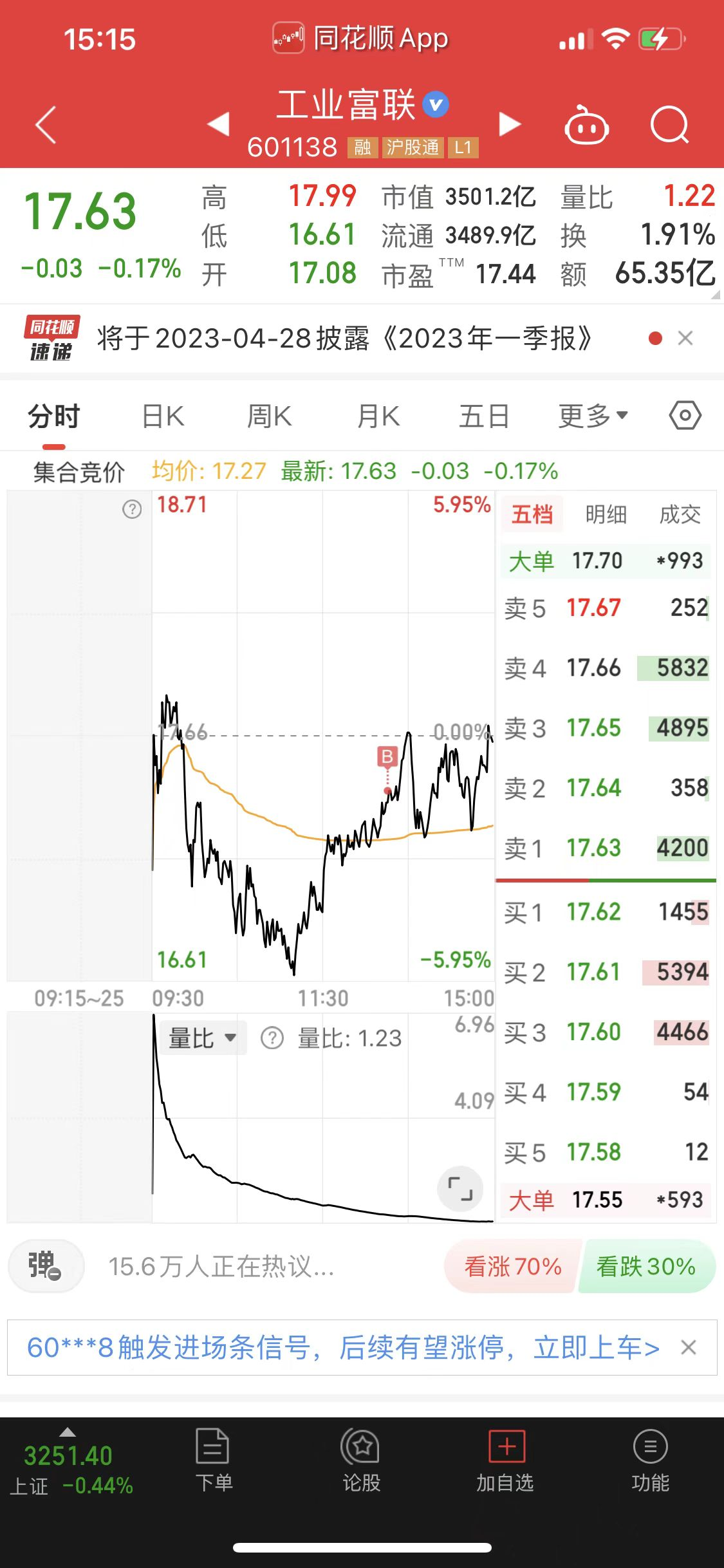 如果明日调整充分的工业富联选择继续向上拓展空间