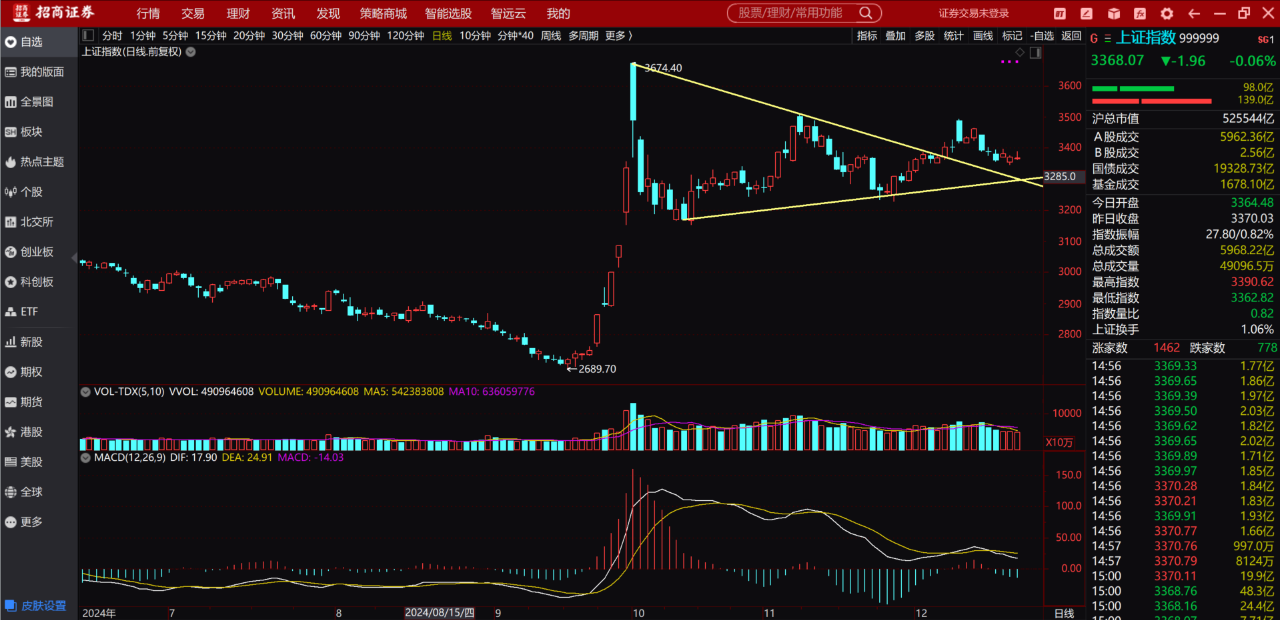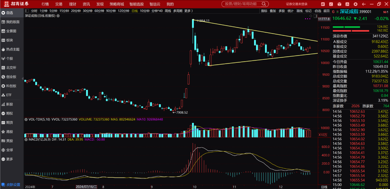变盘的方向上由于九月底史诗级行情以来多数指数走的都是上涨三角旗形,即使现在这个三角旗形越来越不标准了,但方向上我肯定还是预期大概率将往上突破。