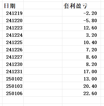 套利交易今天持仓盈亏情况: