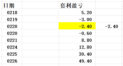套利交易今天持仓盈亏情况: