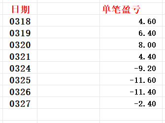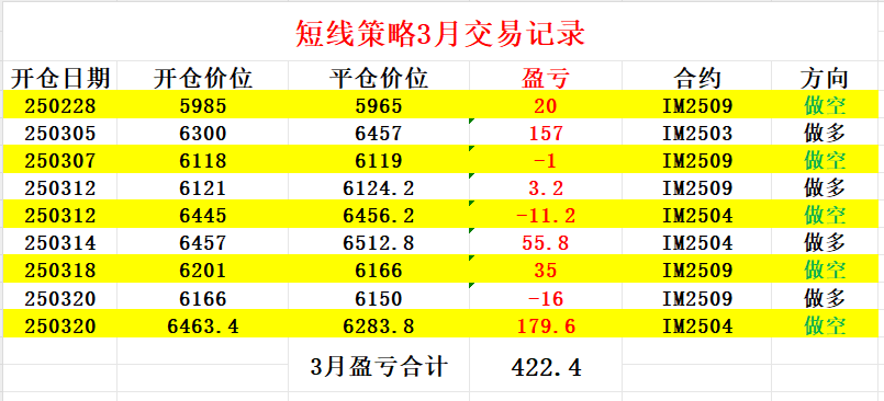 截至今天3月短线投机交易每手一共盈利422.4个点即84480元,交易记录及操作过程如图所示。