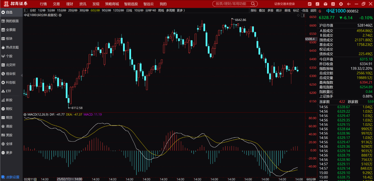 今天走完,后市只要再次走低创出新低那各个指数60分钟及以下的周期就可能会出现底背离低点信号。昨天收盘60分钟都是不会有底背离出现的,今天过后才可能会有,因为60分钟的MACD今天才出现红柱线。