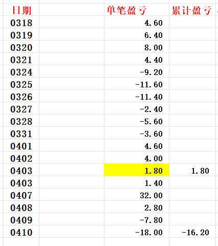 截至今天4月短线投机交易每手一共盈利257.4个点即51480元,交易记录及操作过程如图所示。