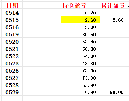 截至今天5月短线投机策略每手一共盈利525.2个点即105040元,交易记录及操作过程如图所示。
