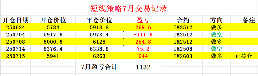 截至今天7月短线投机策略每手一共盈利1132个点即226400元,交易记录及操作过程如图所示。