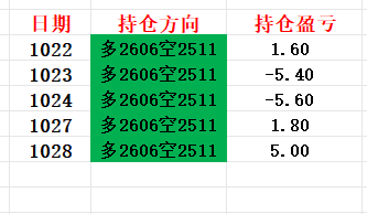 套利交易方面,我继续持有做多IM2606、做空IM2511的组合头寸。所持头寸按结算价计算现在每手暂时盈利5个点,其中今天每手盈利3.2个点即640元。