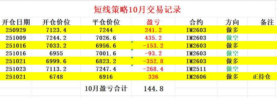 截至今天10月短线投机交易暂时盈利144.8个点即28960元,交易记录及操作过程如图所示。