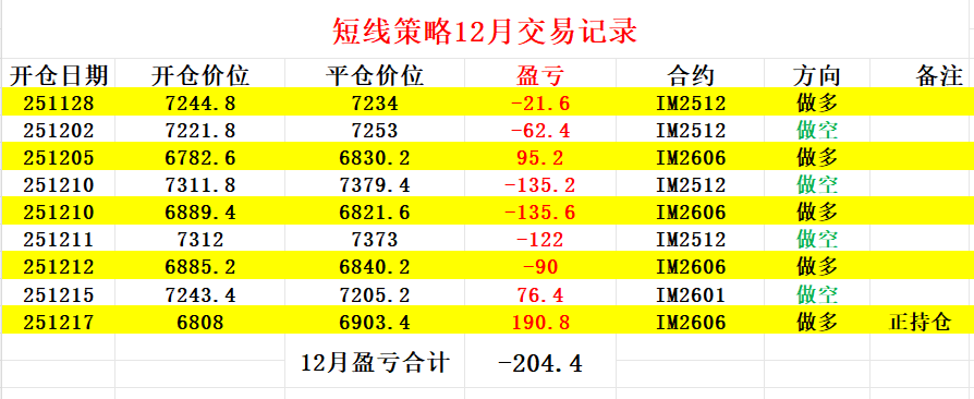 截至周五12月短线投机交易暂时亏损204.4个点即40880元,交易记录及操作过程如图所示。