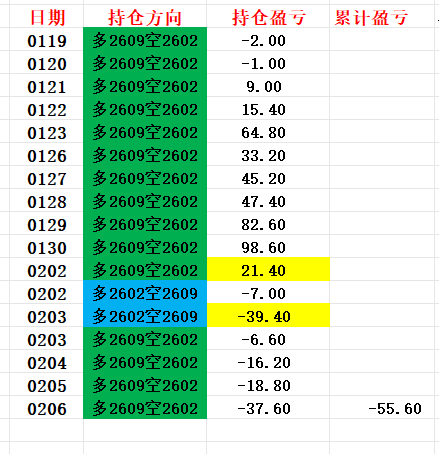 截至周五本轮套利每手暂时一共亏损55.6个点即11120元。