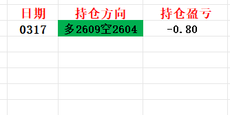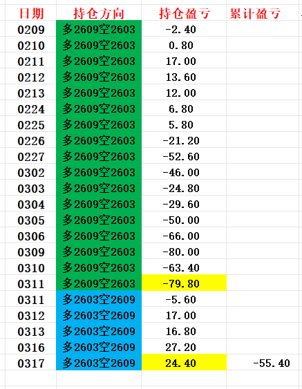平掉了做多IM2603、做空IM2609的组合头寸后,我马上新开了做多IM2609、做空IM2604组合头寸。新开组合头寸按结算价计算今天每手亏损0.8个点,新一轮的套利交易就此开始。