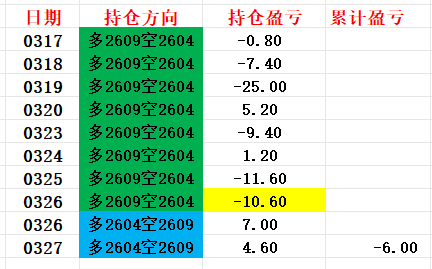 截至周五本轮套利每手暂时亏损6个点即1200元。