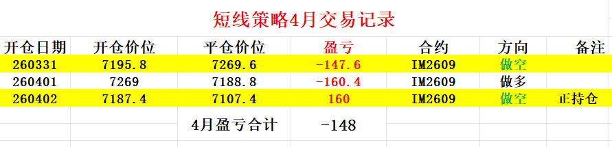 截至上周五,4月短线投机交易暂时亏损148个点即29600元,交易记录及操作过程如图所示。