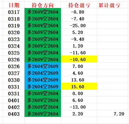 截至上周五本轮套利每手暂时盈利7.2个点即1440元。