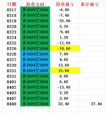 截至今天本轮套利每手暂时盈利27.4个点即5480元。