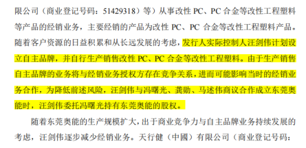 持续11年的股份代持 2010年,创始人汪剑伟委托朋友冯曙光代持创办东莞奥能(天行健前身),这场代持直到2021年才完成股权还原,持续了整整11年。 彼时,汪剑伟通过其控制的公司长期从事改性工程塑料的经销业务,手握华南市场核心经销授权,这是他当时唯一稳定的现金流来源。一旦实名办厂做自主品牌,不仅可能影响与经销授权方的合作关系,还将面临商业利益冲突的现实风险。 而刚成立的东莞奥能没有成熟配方与稳定订单,完全依赖经销业务的“输血”维持。为降低风险,汪剑伟选择了一条“曲线救国”的道路——委托冯曙光代持股权。 而刚成立的东莞奥能没有成熟配方与稳定订单,完全依赖代理业务输血,一旦资金链断裂,前期数百万启动资金将直接亏空。 股权权属清晰、无代持纠纷是A股IPO不可触碰的核心红线。而代持期间,天行健工商变更、银行授信申请、重大合同签署、利润分配决策均由代持人冯曙光操作,即便后续完成还原,十余年里的资金往来、决策流程仍存在理不清的虚空地带,继而代持背景、还原合规性、资金流水、是否存在未披露利益安排等被多次追问。 与代持风险相伴的,是“国产替代”叙事背后的底层经营裂痕。 天行健虽拥有81项专利、参与多项改性塑料国家标准起草,公司在消费电子改性PC市占率达24.84%,但光鲜数据背后是核心技术壁垒不足与供应链卡脖子的双重困境。 81项专利中发明专利占比不足3成,集中在中低端消费电子品类,高端光学级车用PC、半导体级导热PC等高附加值品类的核心专利仍然难以触达。 更关键的是供应链的卡脖子风险。PC聚碳酸酯树脂原材料占公司生产成本超85%,国内高端PC粒子90%以上依赖进口,公司前五大供应商超半数是海外品牌代理商、没有自主定价权。2021-2022年PC粒子市场价格暴涨,公司综合毛利率直接从25.3%跌至17.8%,净利润同比下滑超20%,就是供应链被动的直接印证。 即便是公司引以为傲的3600万元德国进口定制化产线,也存在极强的品类适配局限,仅能生产低转速玻纤增强PC,一旦行业技术路线迭代,将面临巨额资产减值风险。 IPO前夜的极限自救 2023年天行健正式启动IPO辅导,比亚迪也在这一年跃升为公司第一大客户。但这个外界眼中的“金字招牌”,实则是正在拖垮公司的致命枷锁。 绑定比亚迪,本是天行健应对消费电子行业持续下行的被动转型。 为打入比亚迪供应链,公司付出了远超行业常规的代价。一方面,订单毛利率持续暴跌,对比亚迪供货的毛利率从2023年的20.12%腰斩至2024年的12.2%,远低于公司20%的整体毛利率,已逼近盈亏平衡线。 比亚迪在终端市场的价格战,正通过年度降价要求持续向上游传导,而原材料价格并未同步下跌,订单陷入“卖得越多,赚得越少”的死循环。 比低毛利更致命的,是超长账期导致的现金流压力。 比亚迪给天行健的账期长达280天,远超行业常规的3-6个月,也远超公司其他客户150天的平均回款周期;而公司面对上游供应商仅有30-60天的付款账期,上下游账期严重错配形成了较大的资金缺口。 2023年公司经营活动现金流净额8912万元,然而2024年笔直跌至-1722.36万元,销售收现比仅75%,期末3.21亿元应收账款余额中,超80%来自比亚迪,占公司总资产的比重接近三成。 彼时的天行健已走到资金链悬崖边,账面可动用货币资金仅1.2亿元,一年内到期的短期借款就有2.1亿元,连3个月的正常生产经营都难以维持。 砍掉比亚迪近半数订单,不是主动战略选择,而是两害相权取其轻的无奈自救,不砍单、资金链断裂的巨大风险如鲠在喉。 砍单后,公司现金流与业绩数据在2025年出现了账面逆转。 全年经营活动现金流净额回升至2.17亿元,其中一季度便达到1.53亿元,全年营收同比微增1.2%,归母净利润延续逆势增长态势,同比提升6.3%,现有7万吨改性塑料产能的全年利用率维持在70.5%。 然而,看似稳住了业绩基本面,但这场自救的本质却也有些饮鸩止渴的意味。 新能源汽车供应链是强背书的封闭圈子,“比亚迪核心供应商”是公司切入吉利、奇瑞、长安等其他头部车企的核心信用凭证。砍单操作,行业普遍解读为“被比亚迪踢出核心供应链”,将直接导致后续对接车企项目的准入审核严苛度翻倍,订单落地难度指数级上升,堵死了新能源业务的长期增长空间。 为对冲比亚迪订单流失带来的营收缺口、保住利润增长曲线,公司在2024年便推行极端的费用管控,这一策略在2025年进一步加码,也引发了监管对业绩粉饰的重点质疑。 比如2024年天健新材营收为11.29亿元,同比增长20.93%,净利润为6352.09万元,同比下滑23.36%,到了2025年,在营收微增的背景下净利润再度上行,强力的费用管控功不可没。 其中2024年业务招待费从406.21万元降至242.03万元,降幅近40%,单笔超万元的招待事项直接减半,监管直接质疑是否存在第三方代垫费用的体外循环。 行业产能过剩下的逆势扩产豪赌 就在市场以为经历了砍单、严苛核查的天行健会选择保守闯关时,公司作出更激进的决定:募资3.97亿元建设改性塑料制造中心二期项目,达产后新增4万吨改性塑料产能,在现有7万吨产能的基础上逆势扩产57%。 这场扩产本质的增长故事,有极大可能得产能过剩风险。 首先,当前国内改性塑料行业已陷入严重产能过剩,2025年行业总产能突破3000万吨,全年有效需求不足2000万吨,行业平均产能利用率不足60%,头部厂商纷纷收缩产能、优化产线。 天行健2025