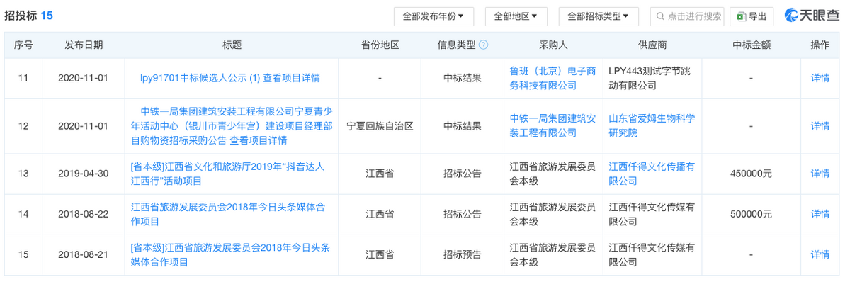 天眼查APP数据显示,抖音可是很早就与多地旅游局有合作。