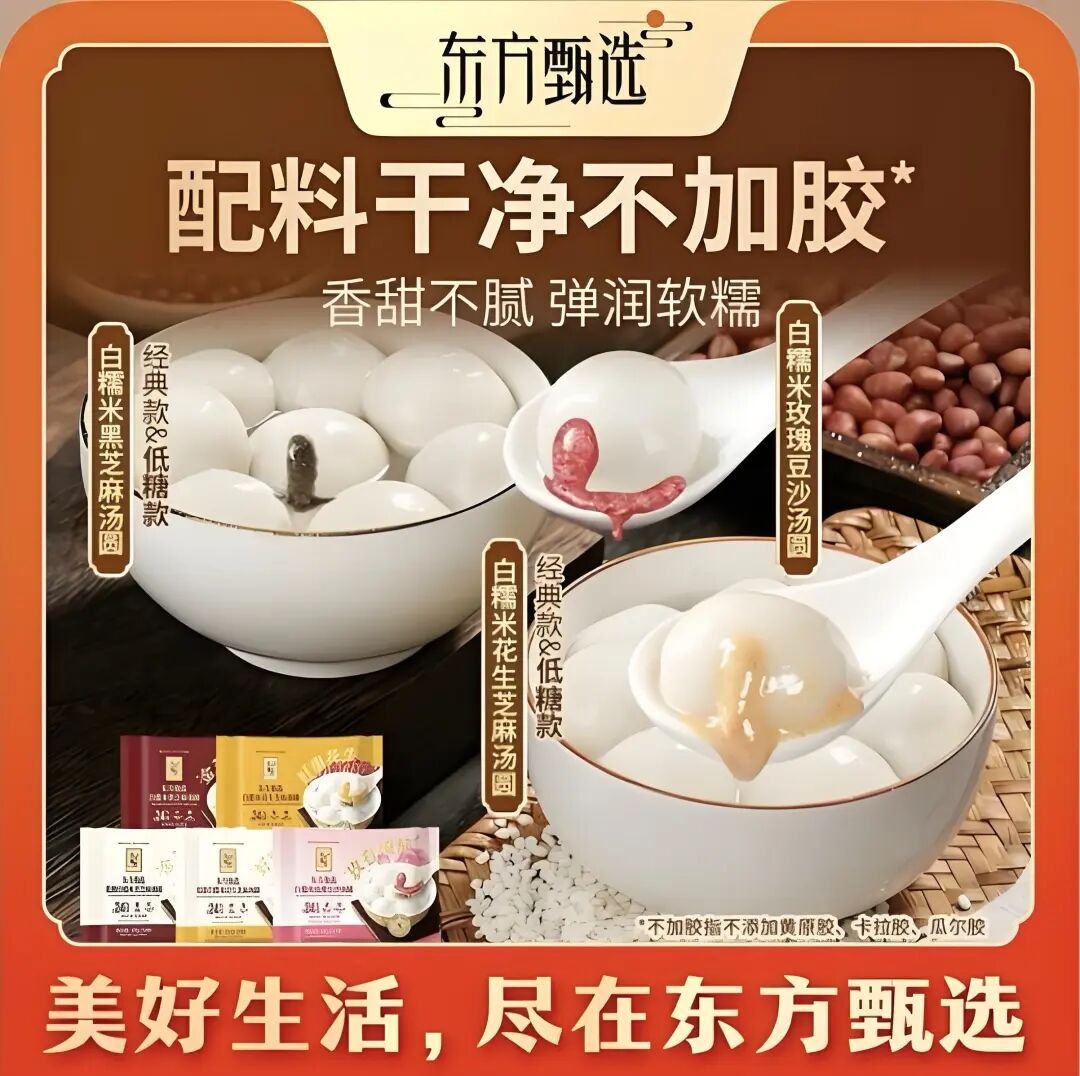 在开发汤圆时,东方甄选团队发现行业普遍使用卡拉胶等成分来保证口感、防止煮散。但考虑到用户对食品安全的顾虑,他们坚持使用植物油、不加胶,哪怕这意味着更高的成本和更难的工艺。手抓饼同样如此——市面上多数产品使用起酥油,他们选择了成本更高、但更健康的猪油。