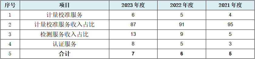 从上表可见,发行人按产品类型收入表中四栏营业收入数据中,除检测服务收入取大数依次为:2千万、5千万、9千万,与2、5、8上的规律性数组仅相差1外,几乎全部表现出递增规律性变化,其中计量校准及检测服务收入占比也同样表现出规律性变化。