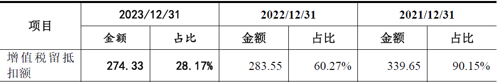 发行人披露其他流动资产明细中,其中增值税进项留抵情况,如下表所示: