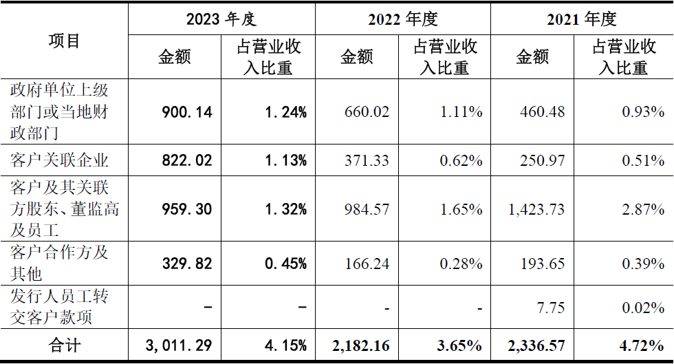 发行人披露的第三方回款情况,具体如下表所示: