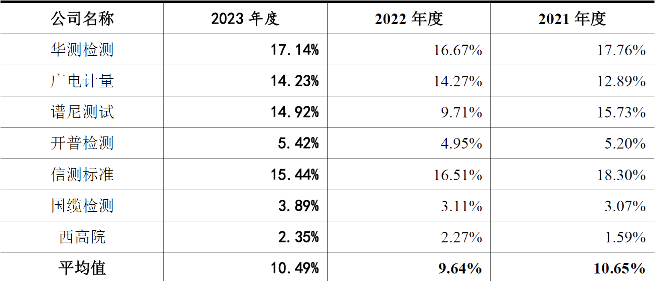 发行人披露与同行业可比公司研发费用率的对比情况,如下表所示: