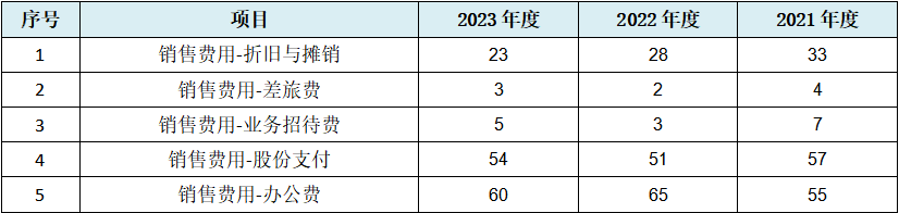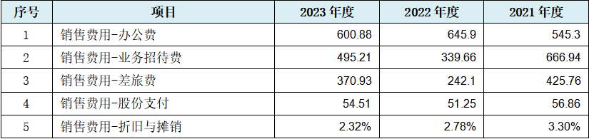而发行人销售费用数据本身,也表现出多项数据规律性情况,如下表: