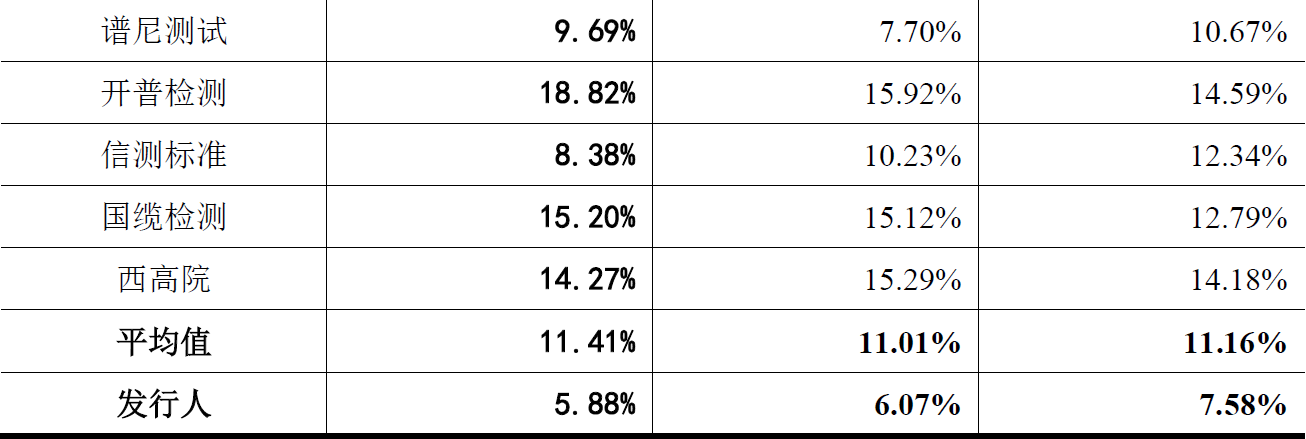 发行人研发费用率平均值为4.36%,仅为行业平均值8.38%一半的水平,且低于上表中任何一家可比公司研发费用率。而研发投入是企业盈利能力的重要保证,发行人可比之下的低研发投入比,也可能对应发行人真实盈利能力不容乐观。