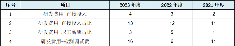 而发行人研发费用数据本身,也表现出多项规律性情况,具体如下表: