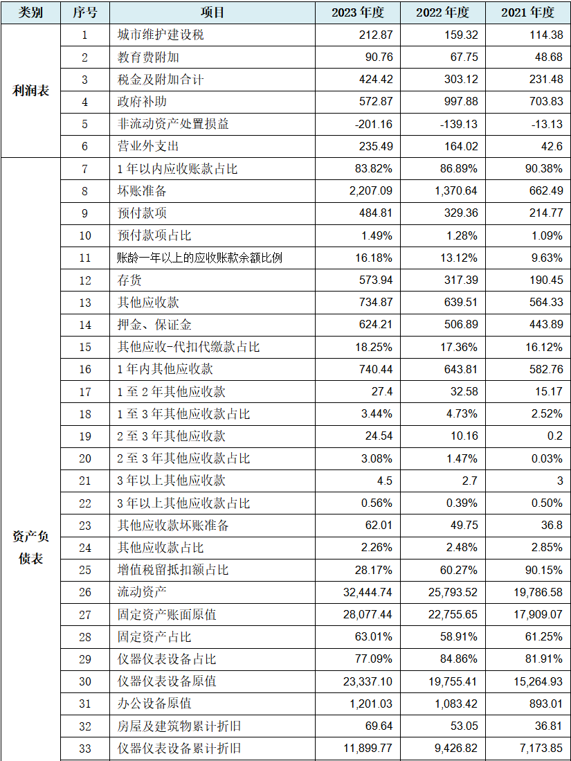 从上表可见,发行人主营业务收入依次为49,412.15万元、59,697.74万元、72,553.79万元,表现出符合市场预期的递增变化趋势。但我们仔细比较这组数据间规律就会发现,2022年度同比增加1亿元整,2023年度同比增加1.28亿元,也为1亿元左右。如果我们将该数组取大数,则依次为:5亿元、6亿元、7亿元,每年稳定规律性增加1亿元。