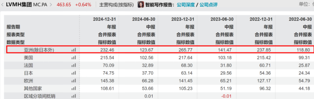 图片说明:LVMH 2024年按地区收入,单位:亿欧元,数据来源于Wind