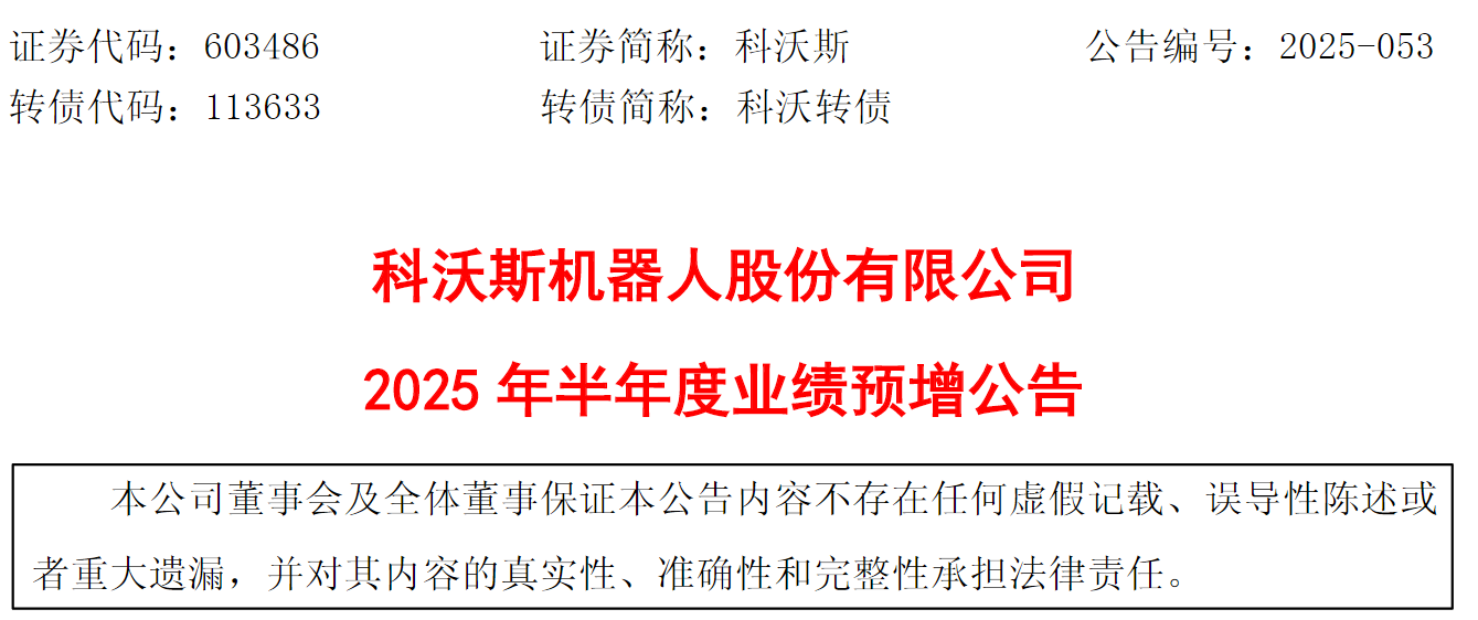 科沃斯(603486.SH)于7月11日披露了2025年半年度业绩预告。公告显示,公司预计上半年实现归母净利润9.6亿-9.9亿元,较上年同期增长57.64%-62.57%;扣非净利润预计为8.4亿至8.7亿元,同比增长50.71%-56.09%。