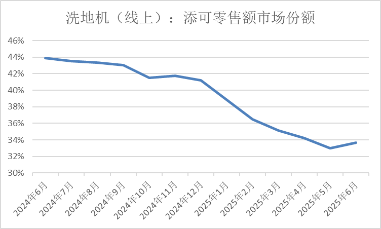 奥维云网最新数据显示,2025年上半年添可洗地机零售额增速仅为8.2%,远低于行业41%的平均水平,市场份额较去年同期下降了10个百分点。