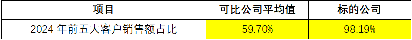 且横向比较来看,标的公司的客户集中度水平也远远高于同行业可比公司。经相关年报数据测算,此次所选择可比公司2024年前五大客户销售额占比的平均值为59.70%,也远远低于标的公司同期高达98.19%的占比水平。而在标的公司畸高的客户集中度之下,若未来其不能持续满足公司主要客户的能力要求,或与主要客户的合作关系出现不利变化,则可能会对标的公司的整体经营业绩带来严重影响,进而也不得不令人对于标的公司整体业务的抗风险能力、未来经营业绩的稳定性与成长性产生担忧。