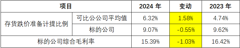 另一方面,就其自身毛利率变动趋势来看,2024年标的公司的综合毛利率为15.39%,较2023年下降1.03个百分点,而其毛利率水平的降低也显然难以与标的公司存货跌价准备计提比例的下降逻辑自洽。综合以上分析之下,标的公司是否存在通过人为调节存货跌价准备计提比例,来粉饰其经营业绩同样存疑。