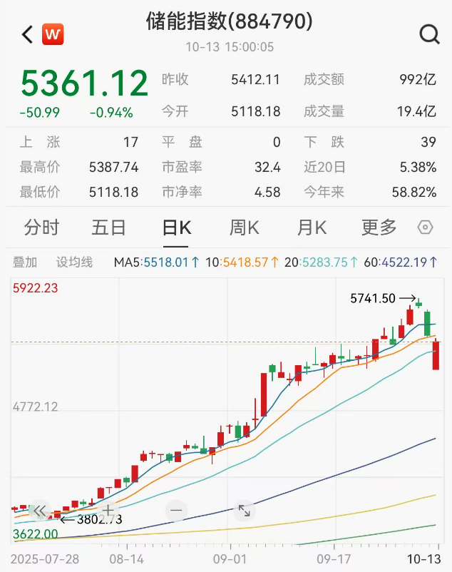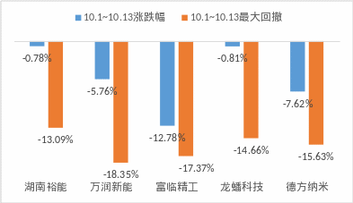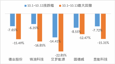 截止到10月13日收盘,储能指数下跌0.94%,3个交易日累计下跌5.01%,10月以来最大回撤约-10.86%。
