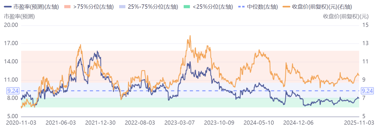 图片说明:中材国际市盈率(2025)与股价走势,数据来源于同花顺