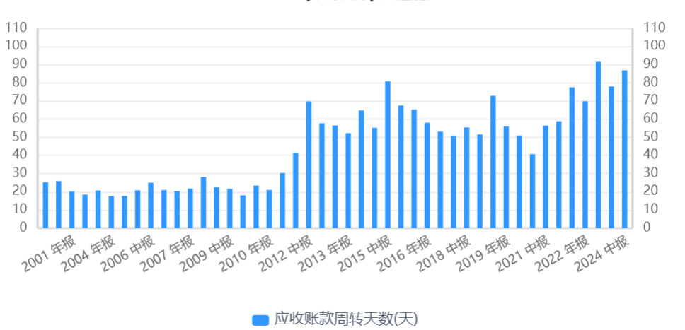 历史数据显示,中材国际应收账款周转天数波动显著:2013-2015年首轮"一带一路"推进期间,海外收入增长伴随应收账款快速攀升;2022年以来,这一指标再度恶化,既包含国内市场疲软背景下的陈年旧款,也涉及集团内部往来款项。