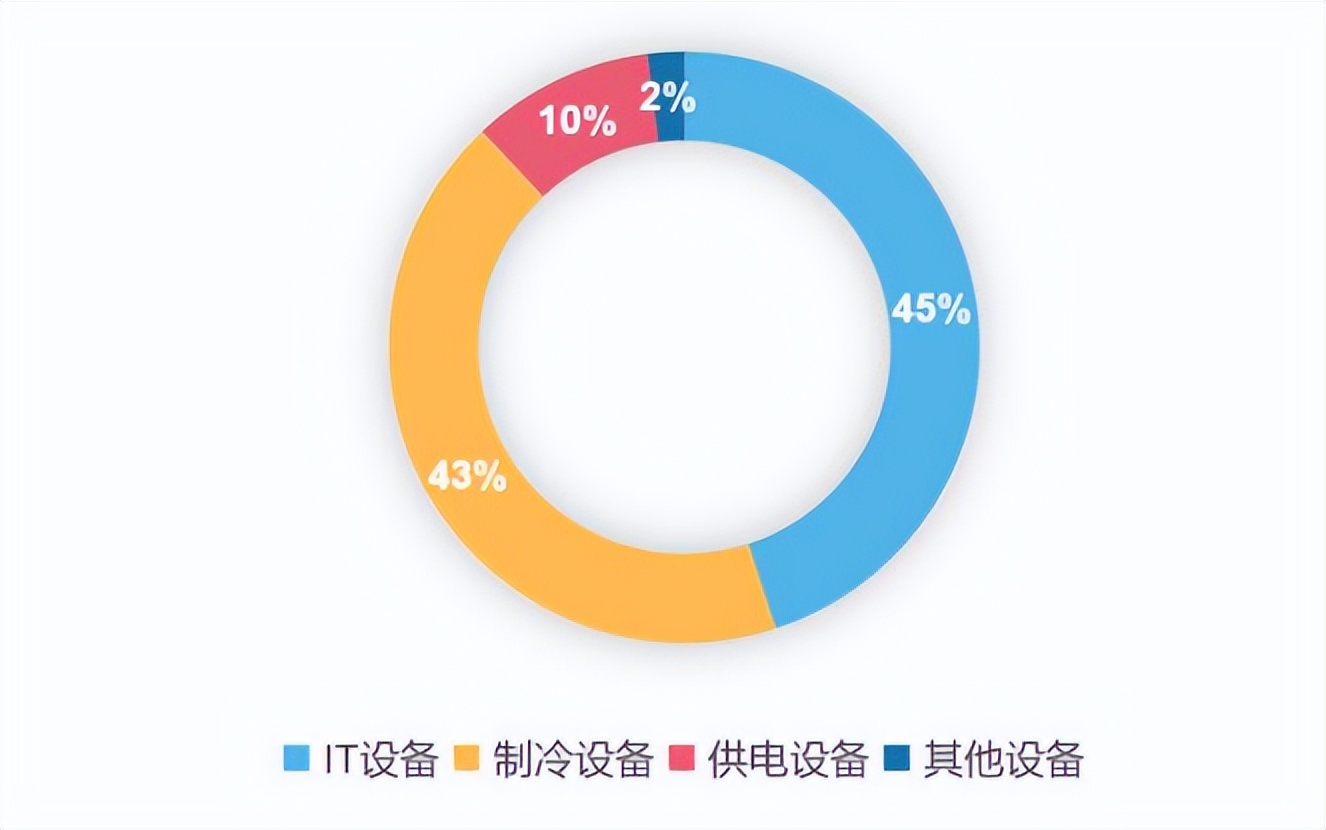进一步深挖电费支出构成,抛开刚性的IT设备运行相关电费支出不谈,制冷系统的能耗占比紧随其后、已达到43%。