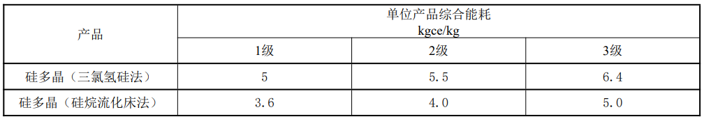 9月16日,国家标准《硅多晶和锗单位产品能源消耗限额(征求意见稿)》也迎来重磅发布,其将硅多晶和锗的单位产品能源消耗限额要求大幅下调,其中将三氯氢硅法多晶硅 3 级(现有企业)的单位产品综合能耗下调至6.4 kgce/kg,而目前执行中的能耗等级3 级(未分产品)的能耗要求为10.5 kgce/kg。