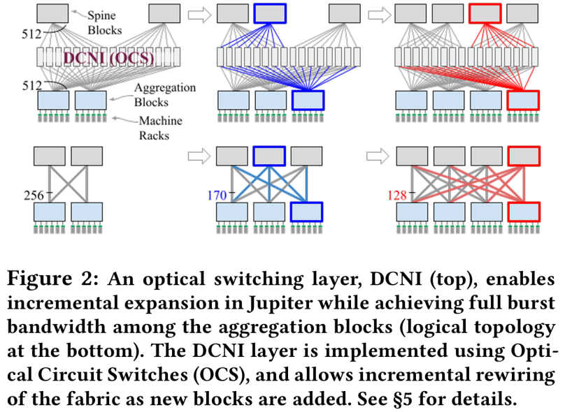 第一篇是在SIGCOMM 2022上发表的论文《Jupiter Evolving: Transforming Google's Datacenter Network via Optical Circuit Switches and Software-Defined Networking》,这是谷歌官方首次大规模公开其数据中心网络架构演进细节的论文,主要讲述了谷歌TPU集群的设计理念;