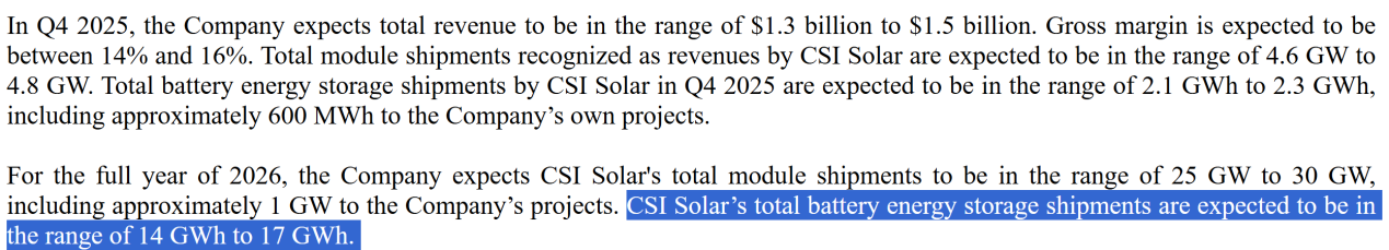 图片说明:CSIQ在2025Q3季报中给出的业绩指引,数据来源于CSIQ财报