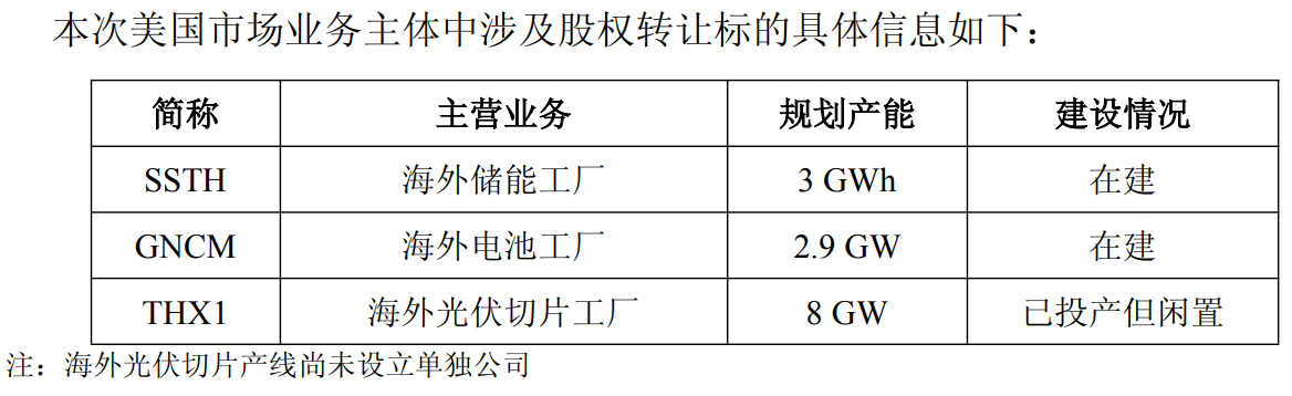 同时,CSI拟将在美国以外但供应美国的制造工厂,包括已建成的海外光伏切片工厂THX1、建设中的海外储能工厂SSTH和海外电池工厂GNCM,通过股权转让的方式重组为CSIQ占75.1%,CSI占24.9%。通过该等安排,CSI可获得一次性股权转让对价,且可以享有后续美国业务24.9%的持续股权收益及回收前期投资。