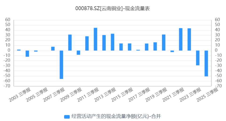 图片说明:云南铜业经营活动产生的现金流净额,数据来源于同花顺