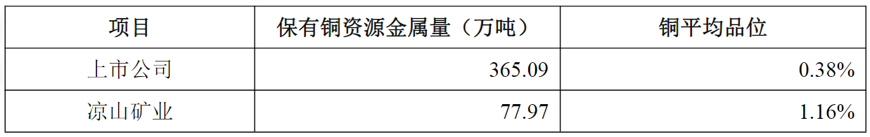 图片说明:上市公司和凉山矿业铜资源量对比,数据来源于公告