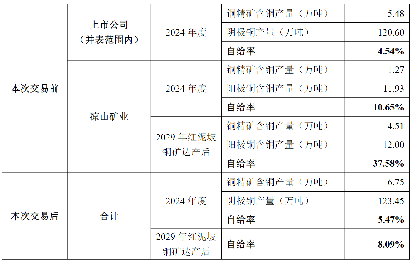 图片说明:凉山矿业交易前后铜自给率变化,数据来源于公告
